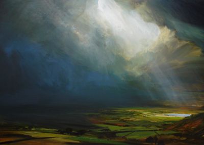 In his Landscape painting’s James finds a constantly engaging conversation, a dialogue between light, air, and the earth. The subject has been a fascination which has established his reputation and crucial in developing his painting philosophy. These works are not of specific topography or familiar sites, it is James’ intention that they are a culmination of his experiences, memories and imagination.